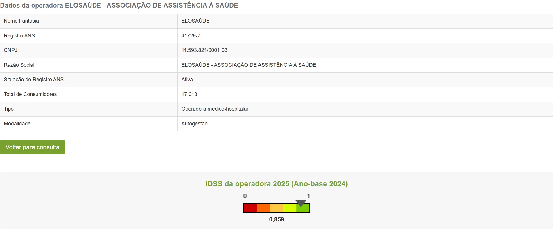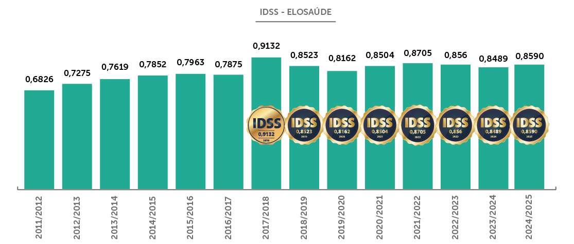 Para as Patrocinadoras, a excelência contínua no IDSS reforça a posição da ELOSAÚDE como uma parceira estratégica, com gestão sólida e responsável dos recursos, previsibilidade, equilíbrio econômico-financeiro e aderência às melhores práticas do setor — atributos essenciais para a sustentabilidade dos planos e para a geração de valor em longo prazo.