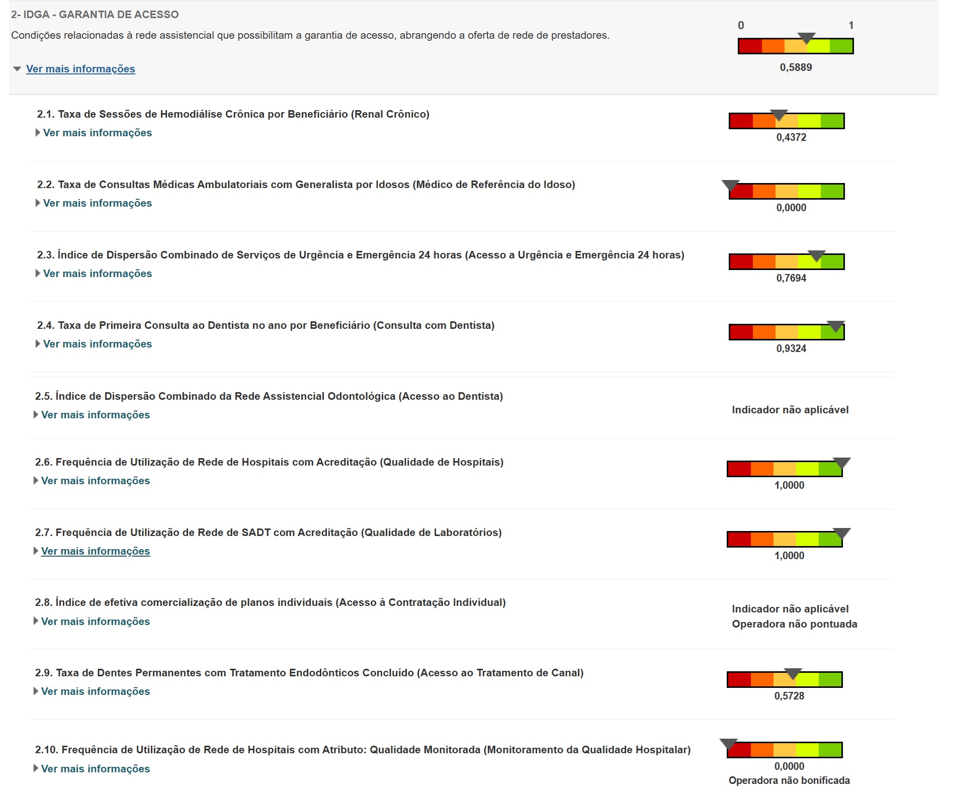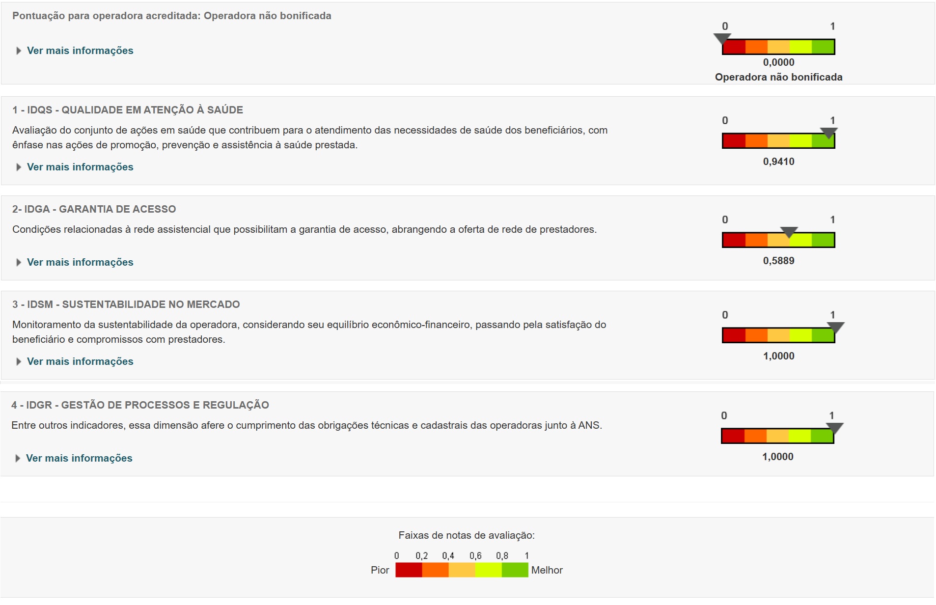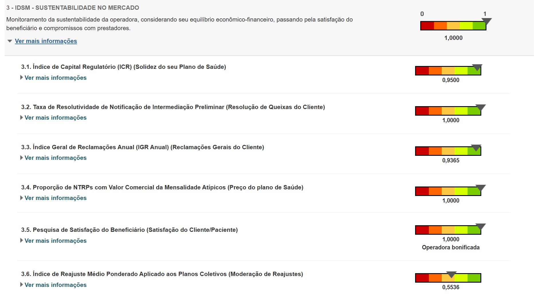 - Sustentabilidade no Mercado, que mede o equilíbrio econômico-financeiro e a capacidade de permanência da operadora;