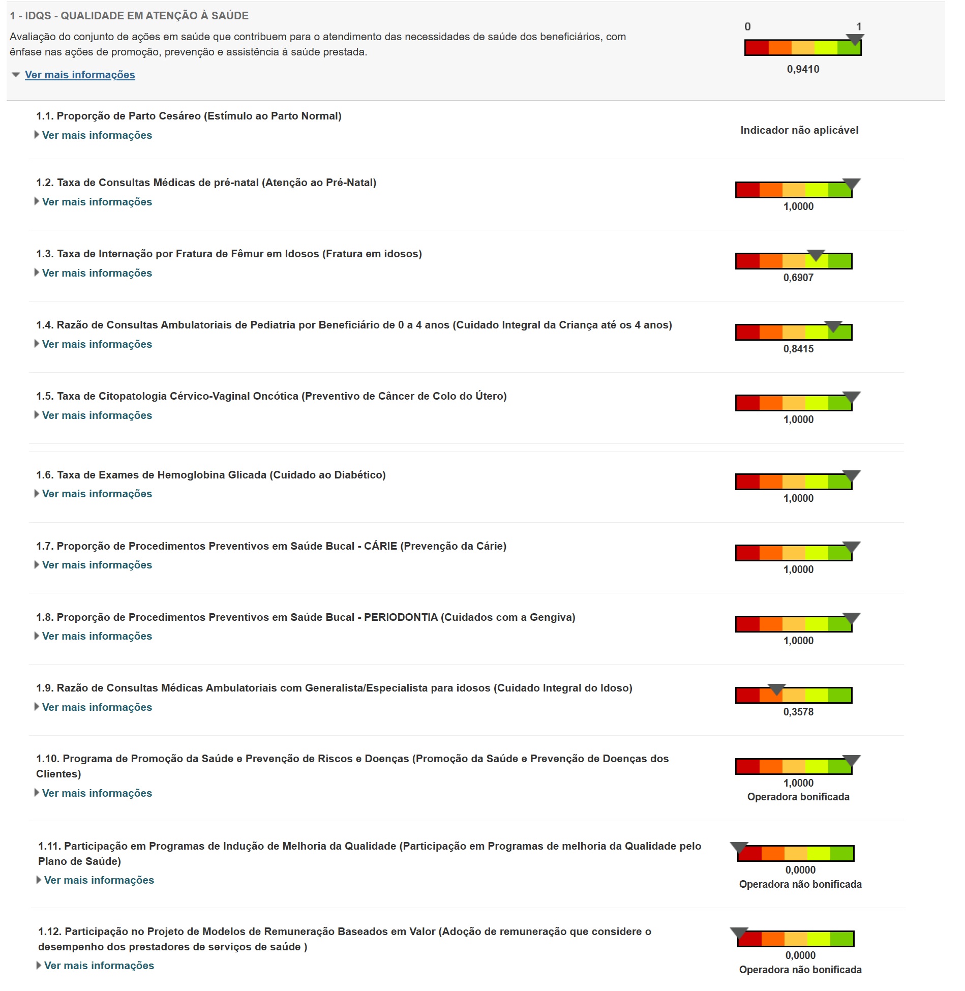 - Qualidade em Atenção à Saúde, que avalia resultados assistenciais e ações de promoção e prevenção;